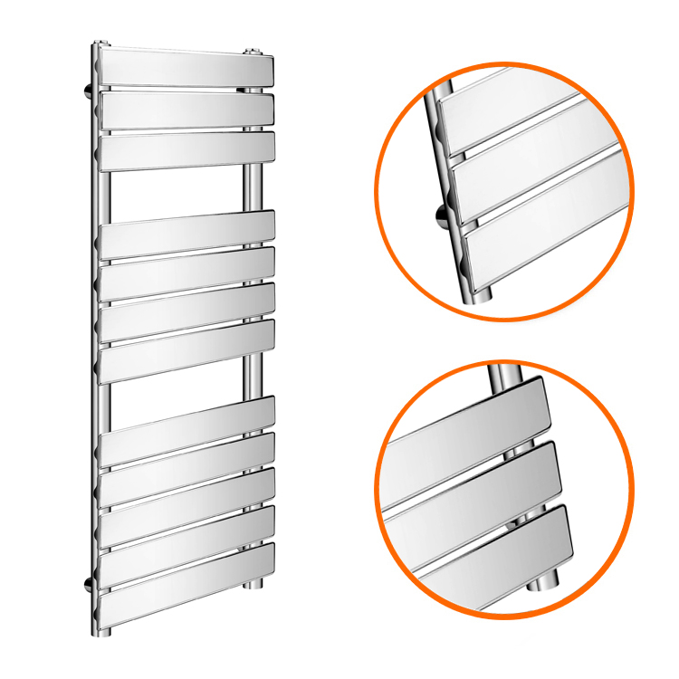 This chrome towel rail has 12 oversized flat panel tubes which look fantastic and are sure to modernise the appearance of your bathroom.