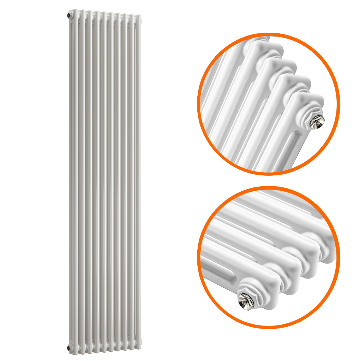1500 x 470mm White Vertical Traditional 2 Column Radiator
