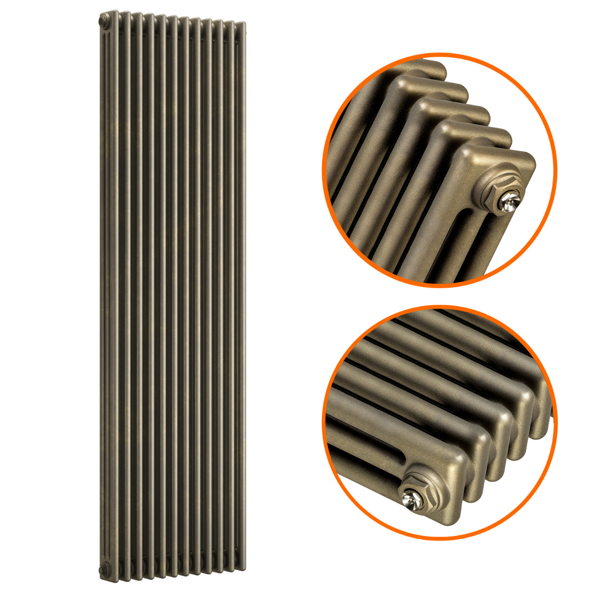 1500 x 560mm Antique Brass Vertical Traditional 3 Column Radiator