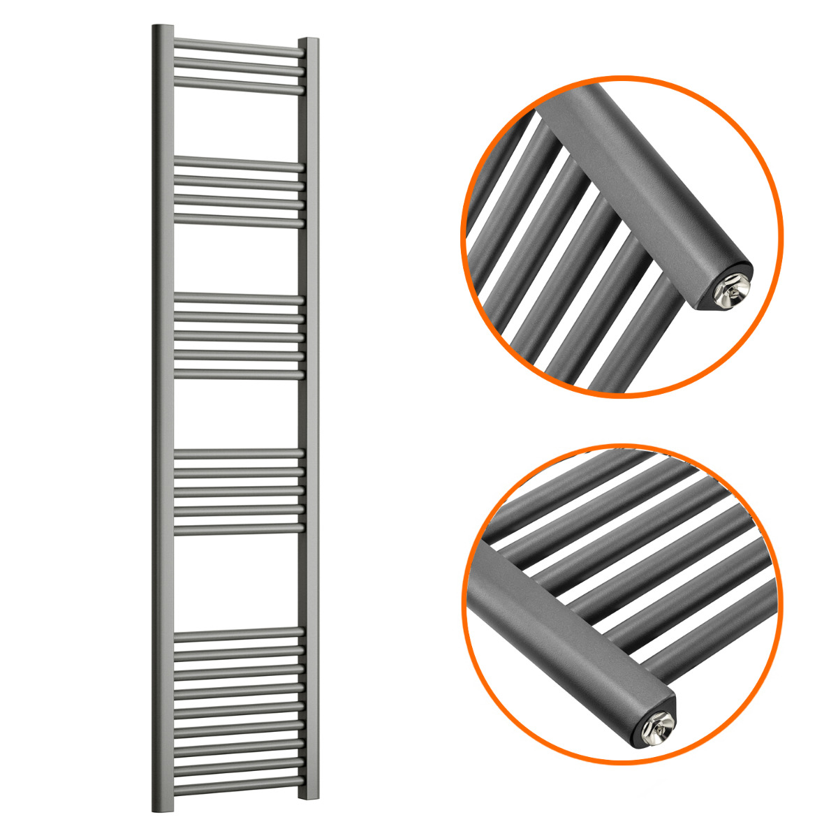 These 1600mm x 400mm anthracite towel rails and an excellent way to enhance the appearance and warmth of your bathroom. The radiators are manufactured to the highest possible standards using premium quality mild steel which ensures reliability and they emit a fantastic heat output of 1410 BTUs.