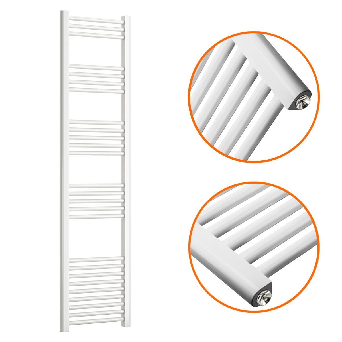 These 1600mm x 400mm glossy white towel rails and an excellent way to enhance the appearance and warmth of your bathroom. The radiators are manufactured to the highest possible standards using premium quality mild steel which ensures reliability and they emit a fantastic heat output of 1410 BTUs.