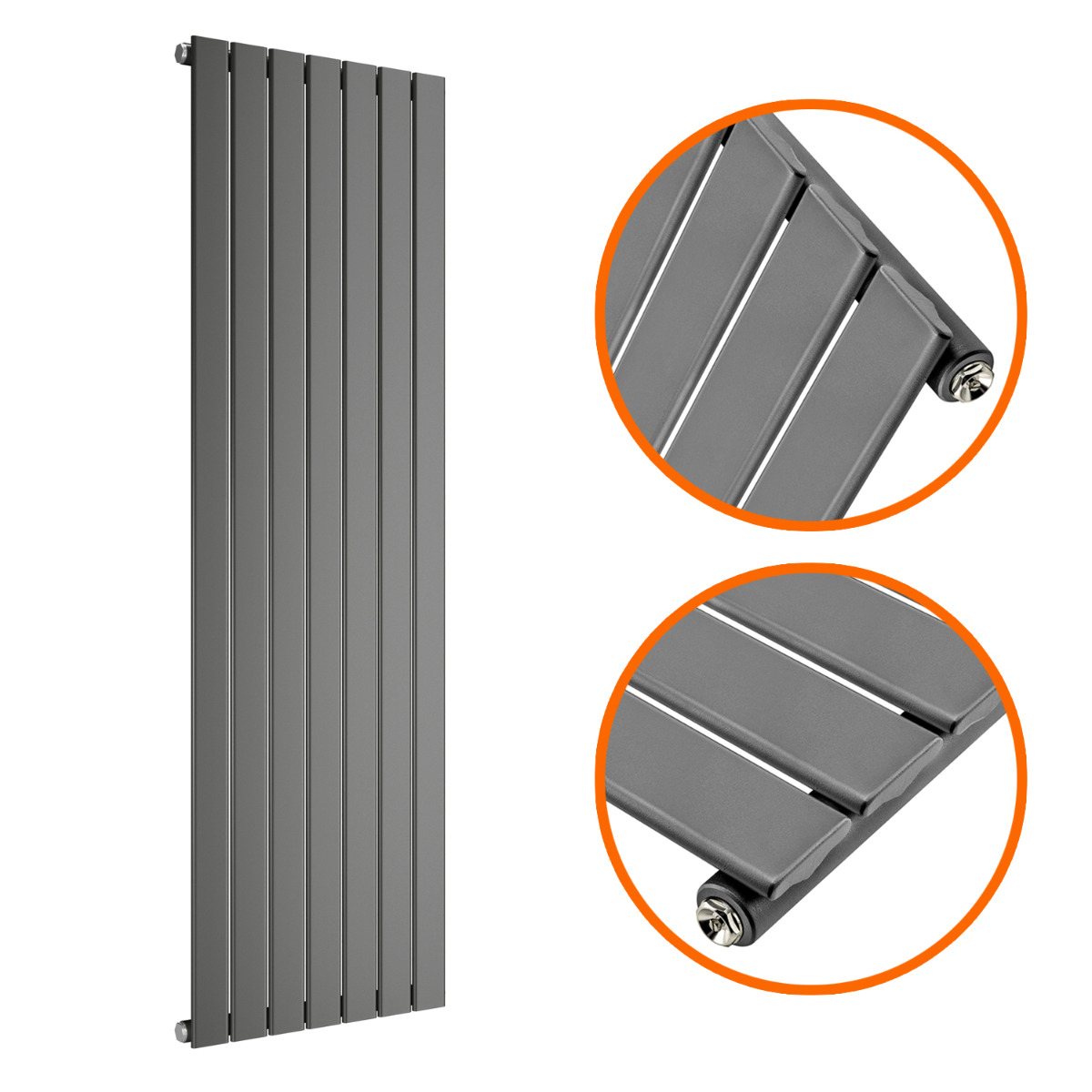 1600 x 490mm Anthracite Single Flat Panel Vertical Radiator