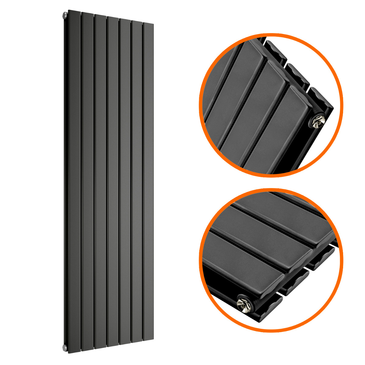 1600 x 490mm Black Double Flat Panel Vertical Radiator
