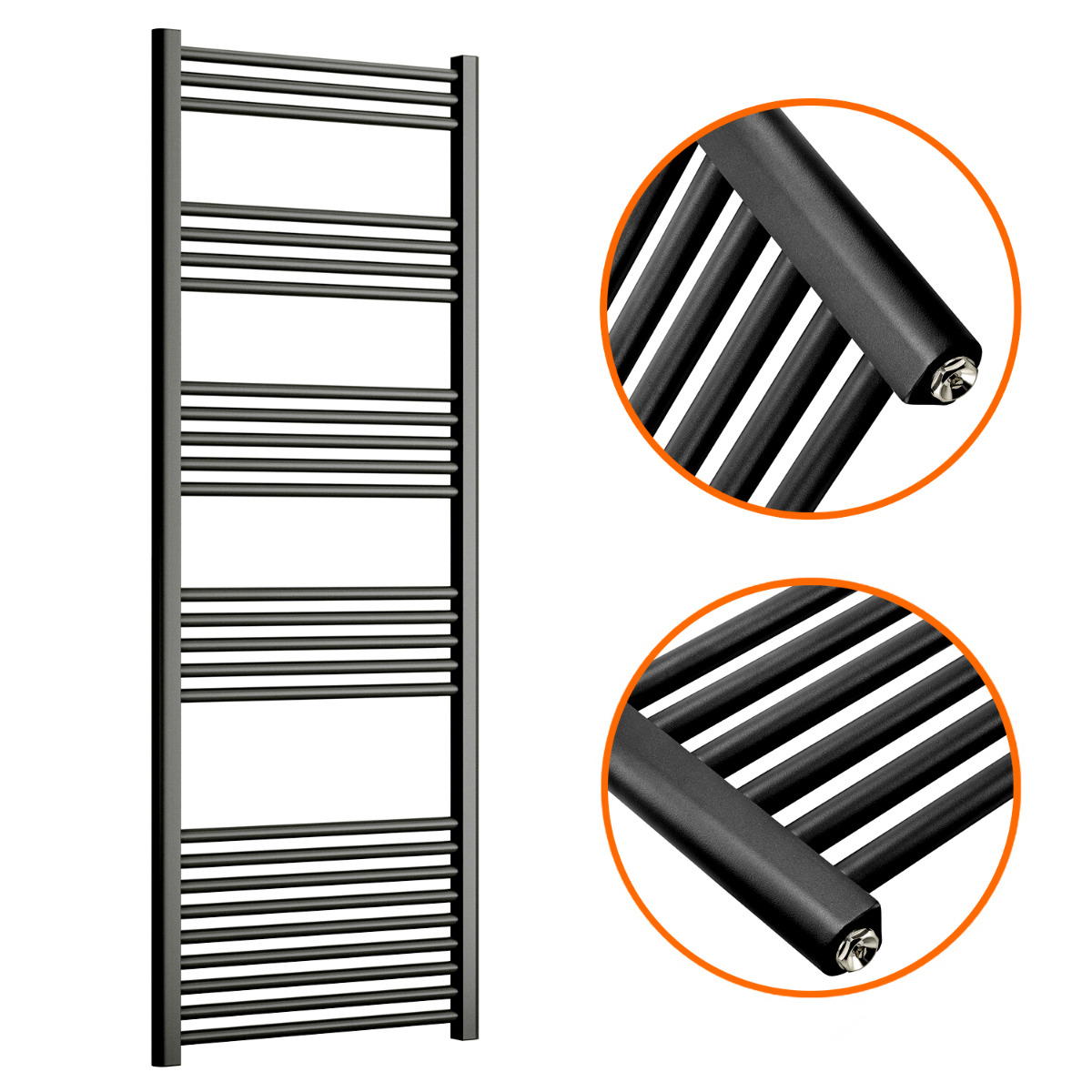 These 1600mm x 600mm black towel rails and an excellent way to enhance the appearance and warmth of your bathroom. The radiators are manufactured to the highest possible standards using premium quality mild steel which ensures reliability and they emit a fantastic heat output of 1871 BTUs.