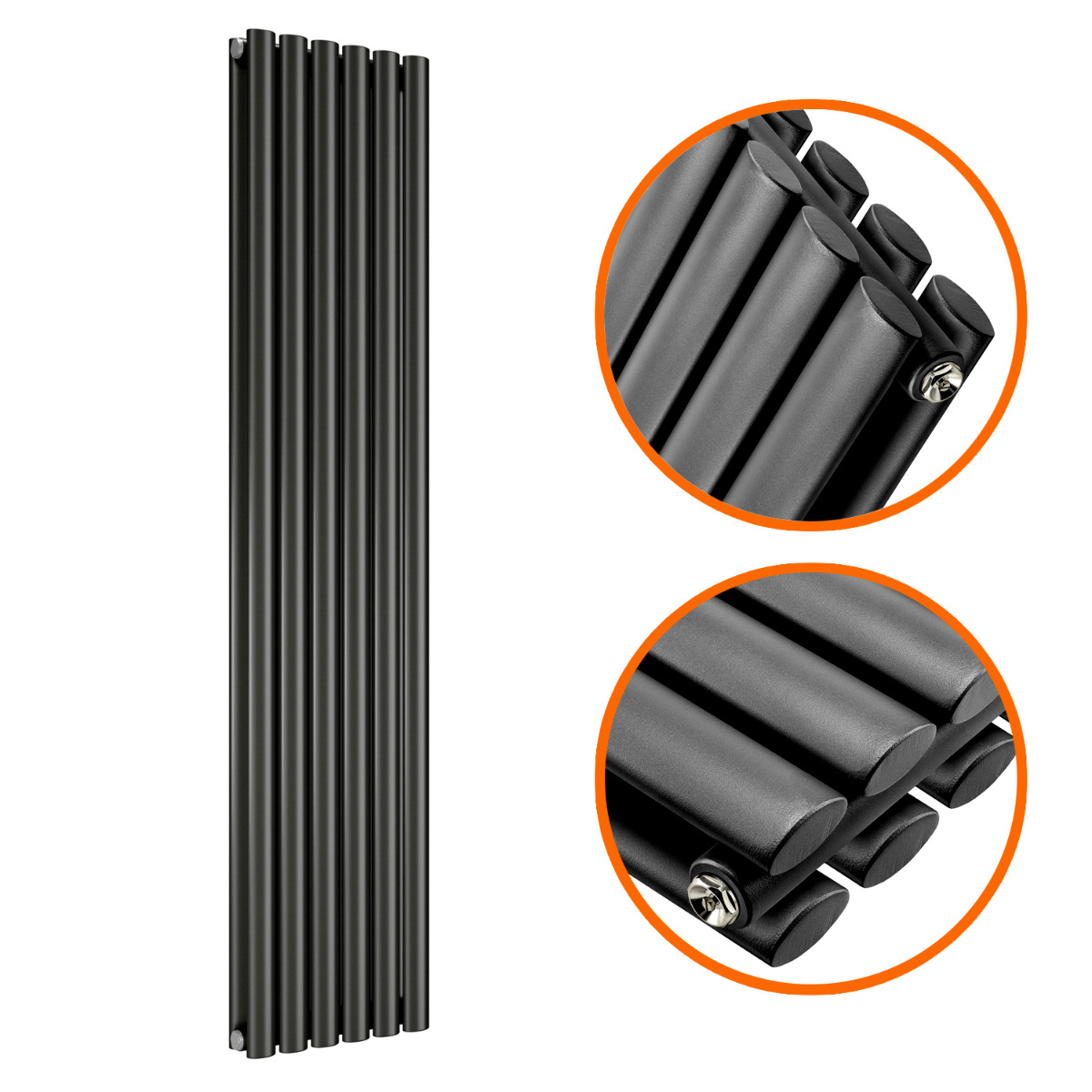 1780 x 354mm Black Double Oval Tube Vertical Radiator