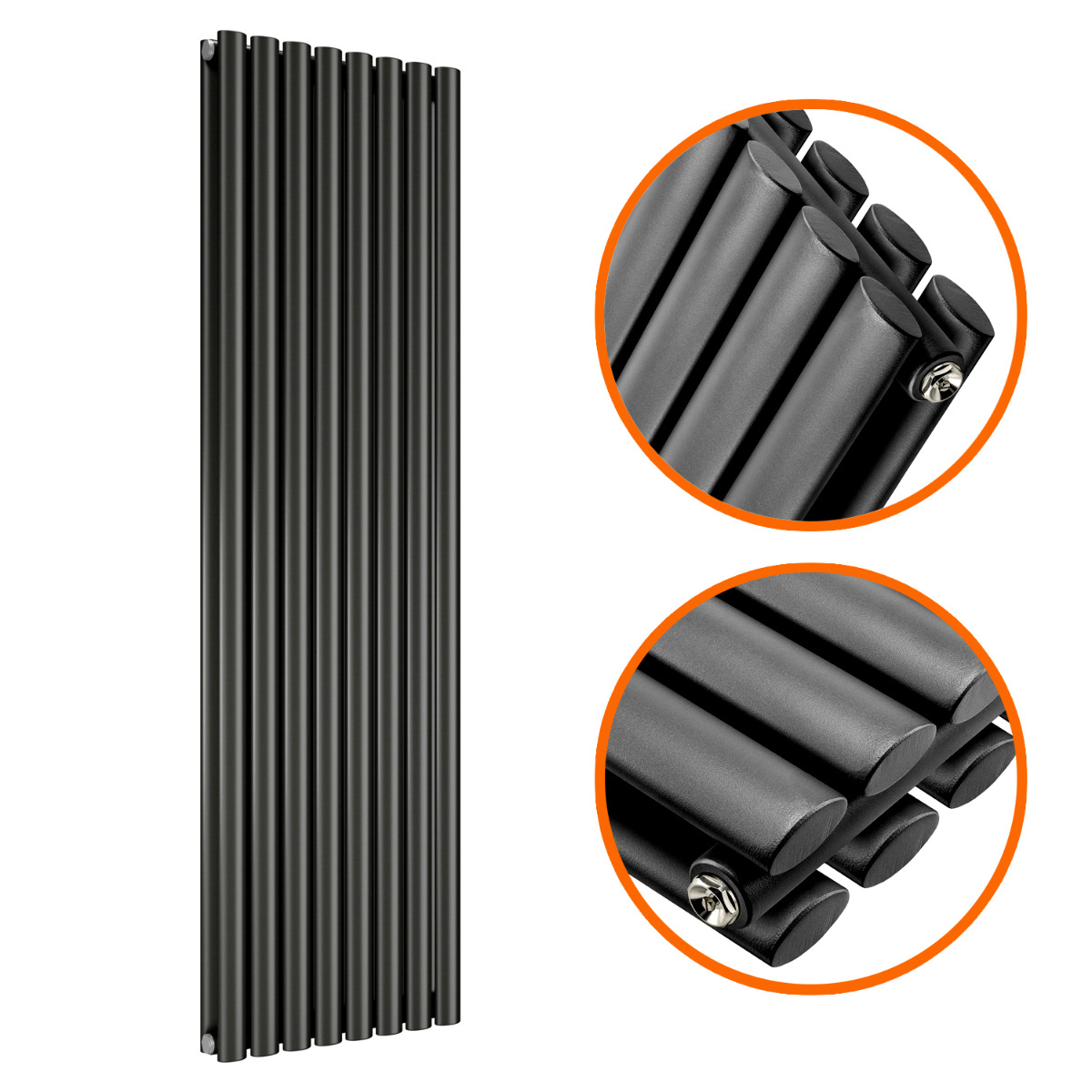1780 x 472mm Black Double Oval Tube Vertical Radiator