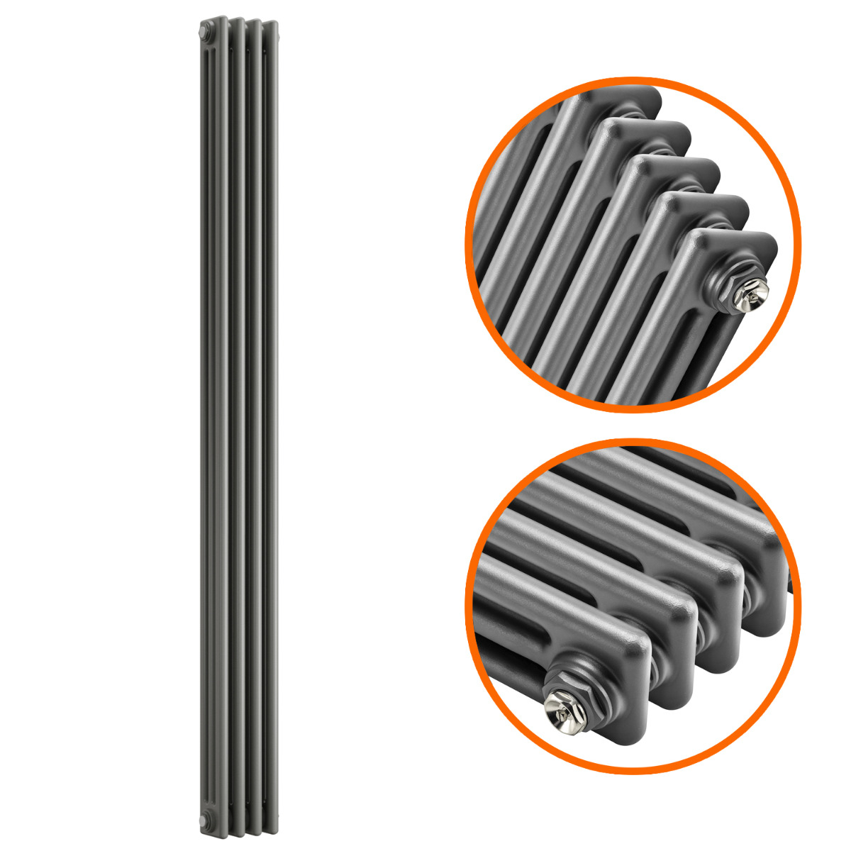 1800 x 203mm Anthracite Vertical Traditional 3 Column Radiator