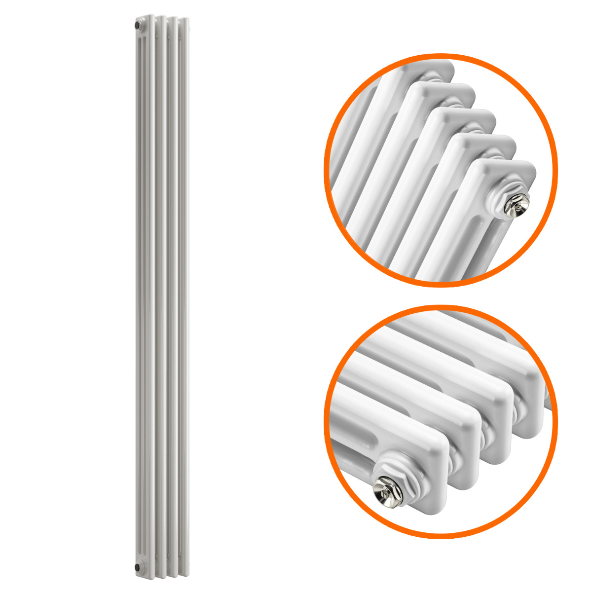 1800 x 203mm White Vertical Traditional 3 Column Radiator