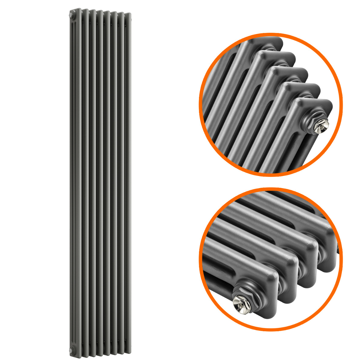 1800 x 383mm Anthracite Vertical Traditional 3 Column Radiator