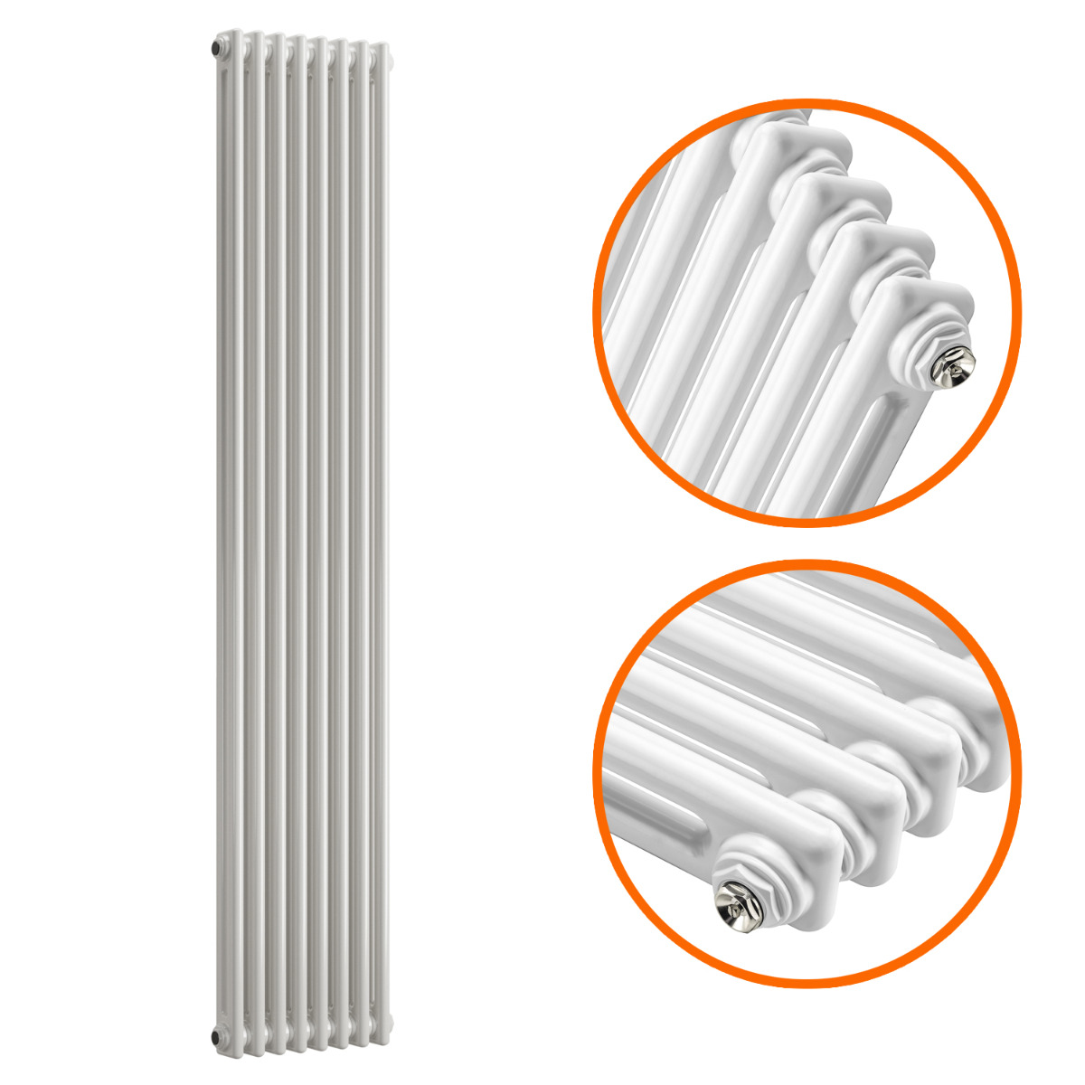 1800 x 383mm White Vertical Traditional 2 Column Radiator