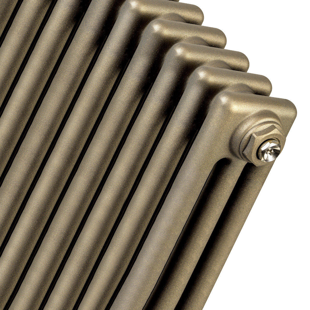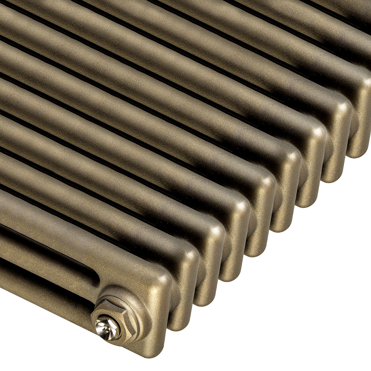 About this colour: This antique brass colour is unique to Radiator Outlet and unlike other colours, it is a pearlescent paint so the radiator will differ depending on the light shining on it. In darker surroundings it will be a flat matte, whilst in bright white lights it will shine back at you and glitter depending on the angle it’s viewed from. It’s a standout colour, we love it, we’re sure you will too!
