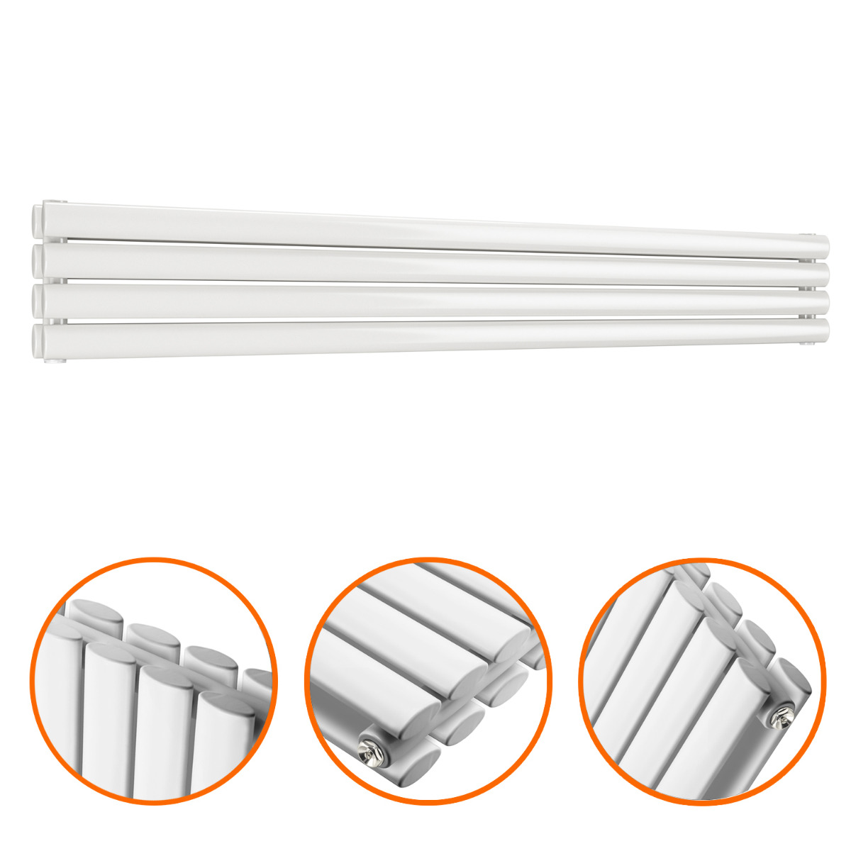 236mm x 1600mm White Double Oval Tube Horizontal / Landscape Radiator