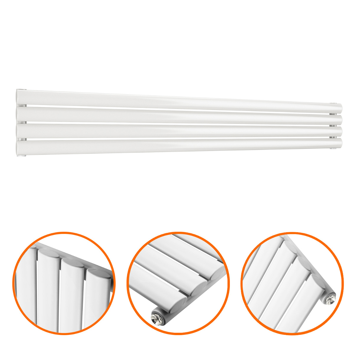 236mm x 1600mm White Single Oval Tube Horizontal / Landscape Radiator