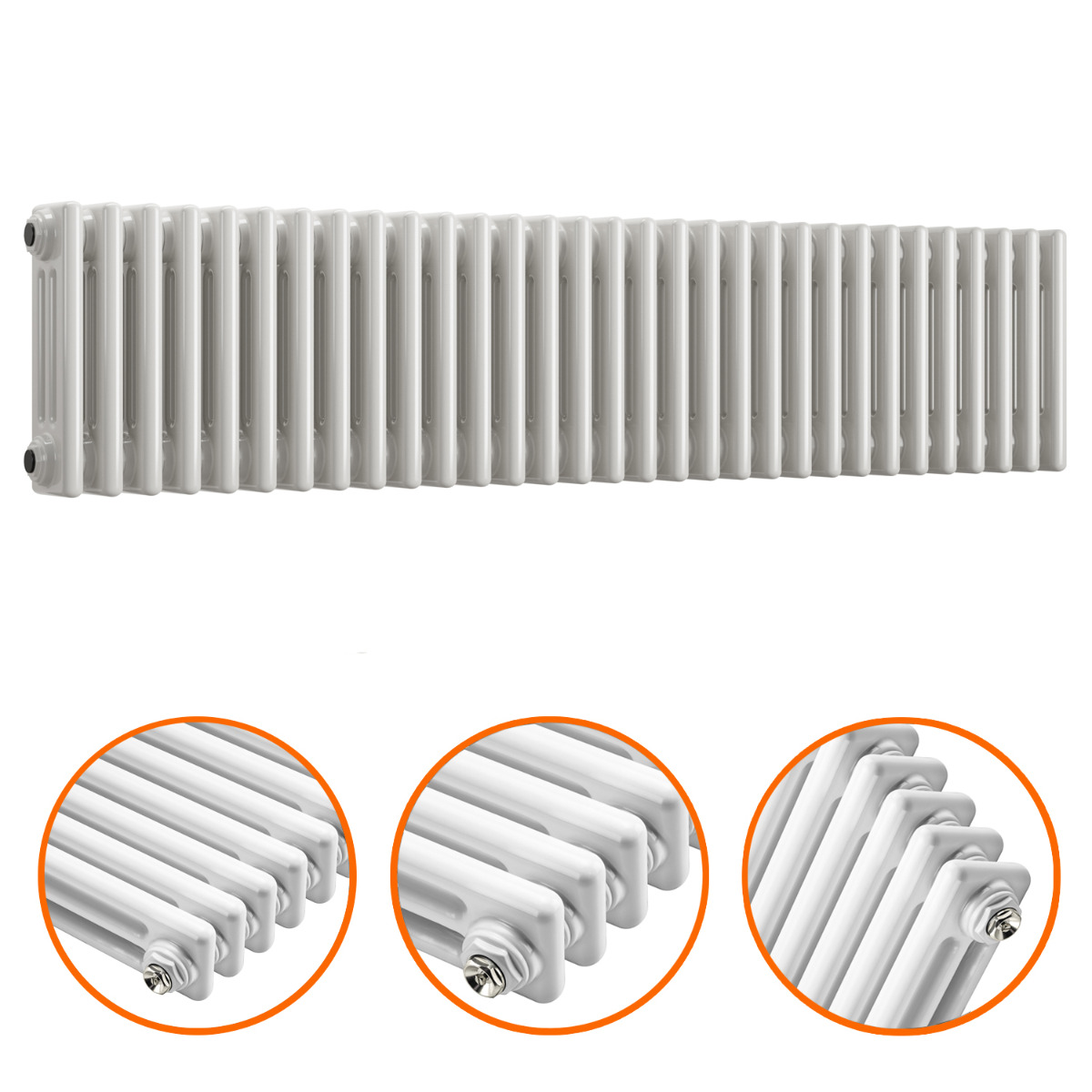 300 x 1508mm White Horizontal Traditional 3 Column Radiator