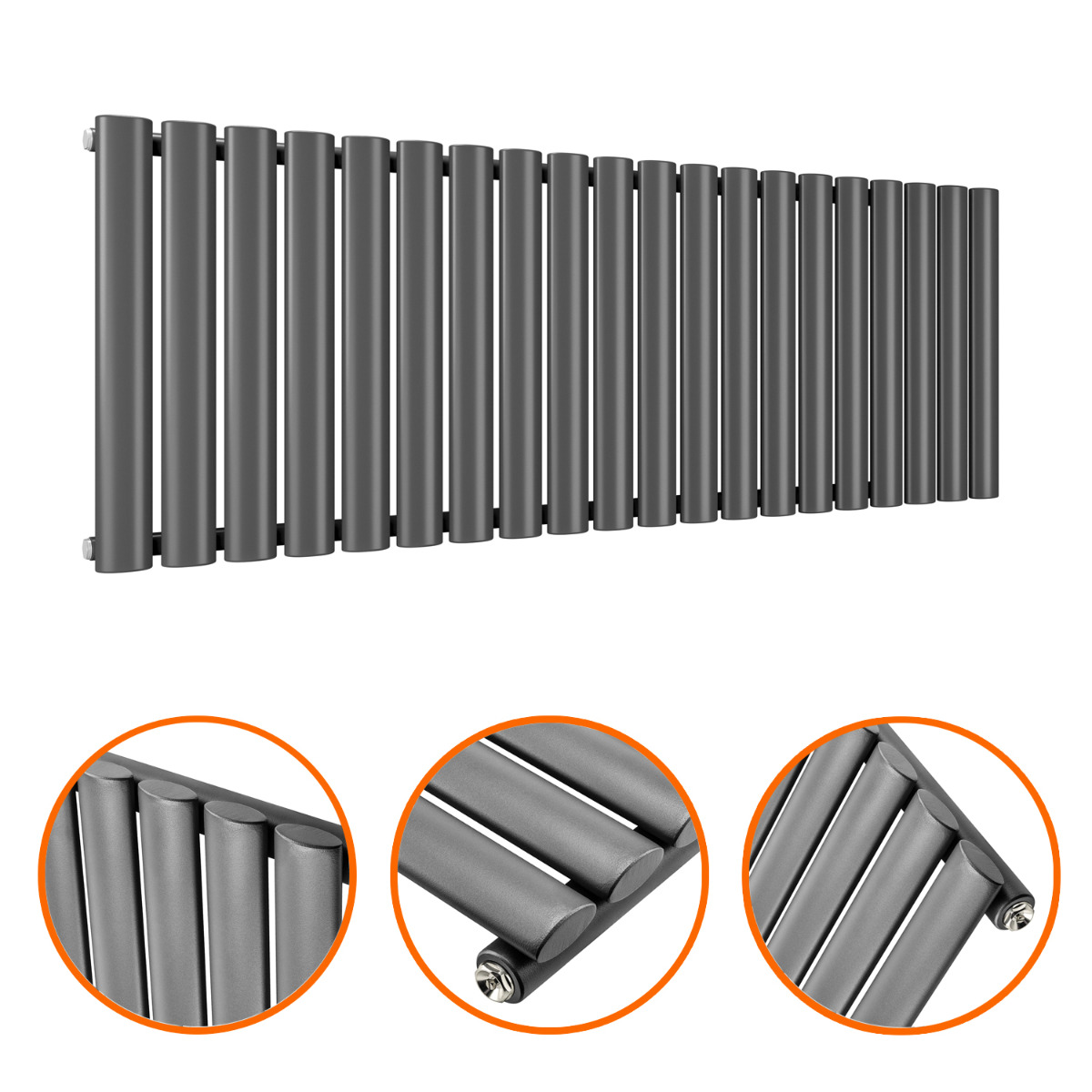 400 x 1180mm Anthracite Single Oval Tube Horizontal Radiator