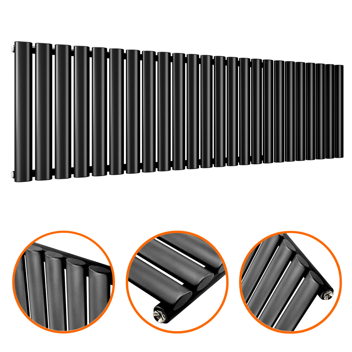 400 x 1411mm Black Single Oval Tube Horizontal Radiator