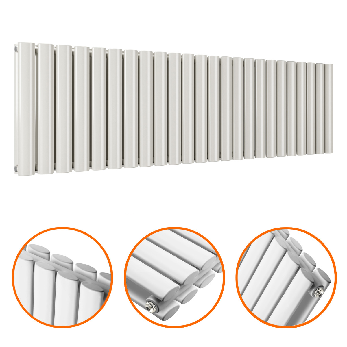 400 x 1411mm White Double Oval Tube Horizontal Radiator