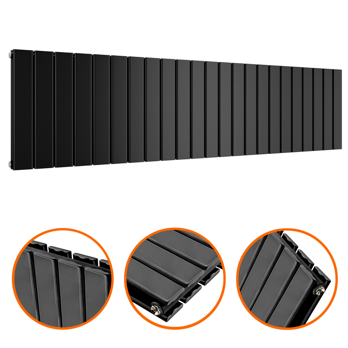 These 400mm x 1610mm horizontal flat panel designer radiators are an excellent and affordable way to add both warmth and style to your home. The radiators are manufactured to the highest possible standards using premium quality mild steel which ensures reliability and provides an impressive heat output of 5426 BTU's.