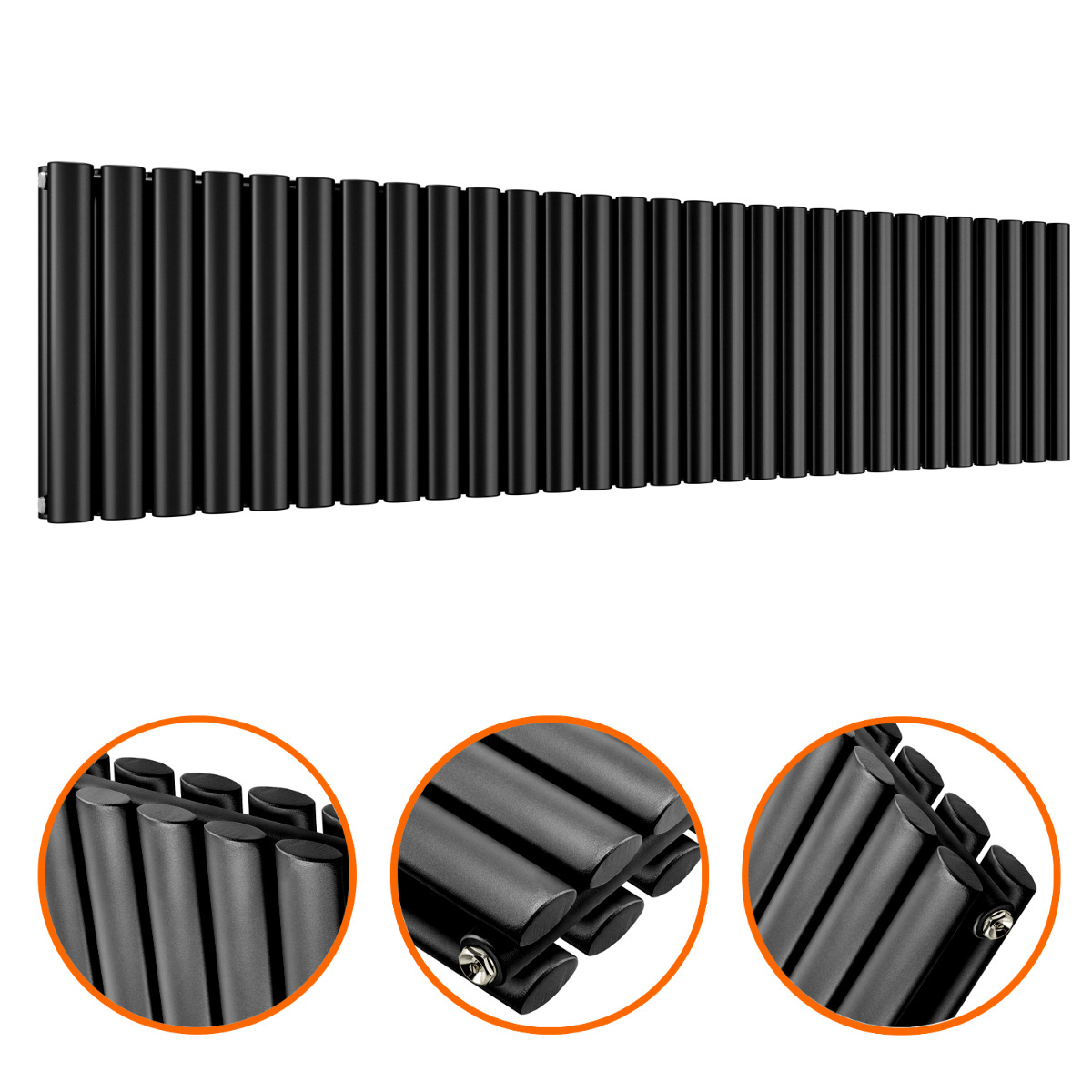 400 x 1652mm Black Double Oval Tube Horizontal Radiator