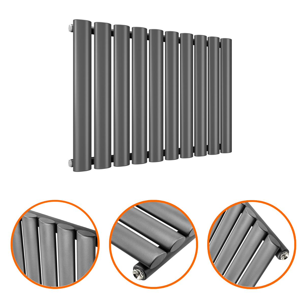 400 x 595mm Anthracite Single Oval Tube Horizontal Radiator