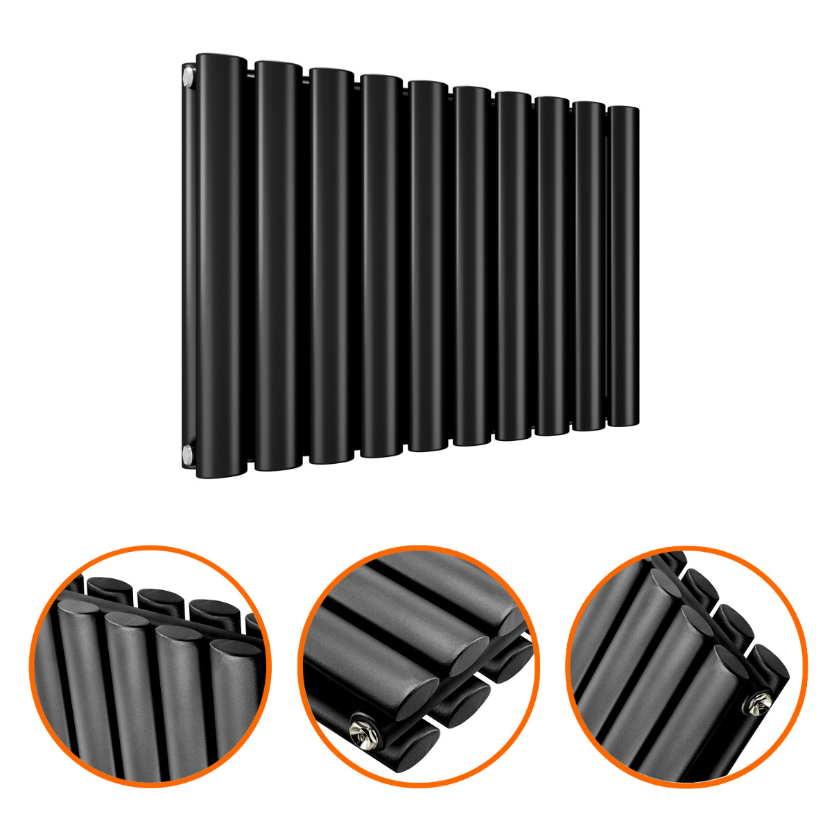 400 x 595mm Black Double Oval Tube Horizontal Radiator