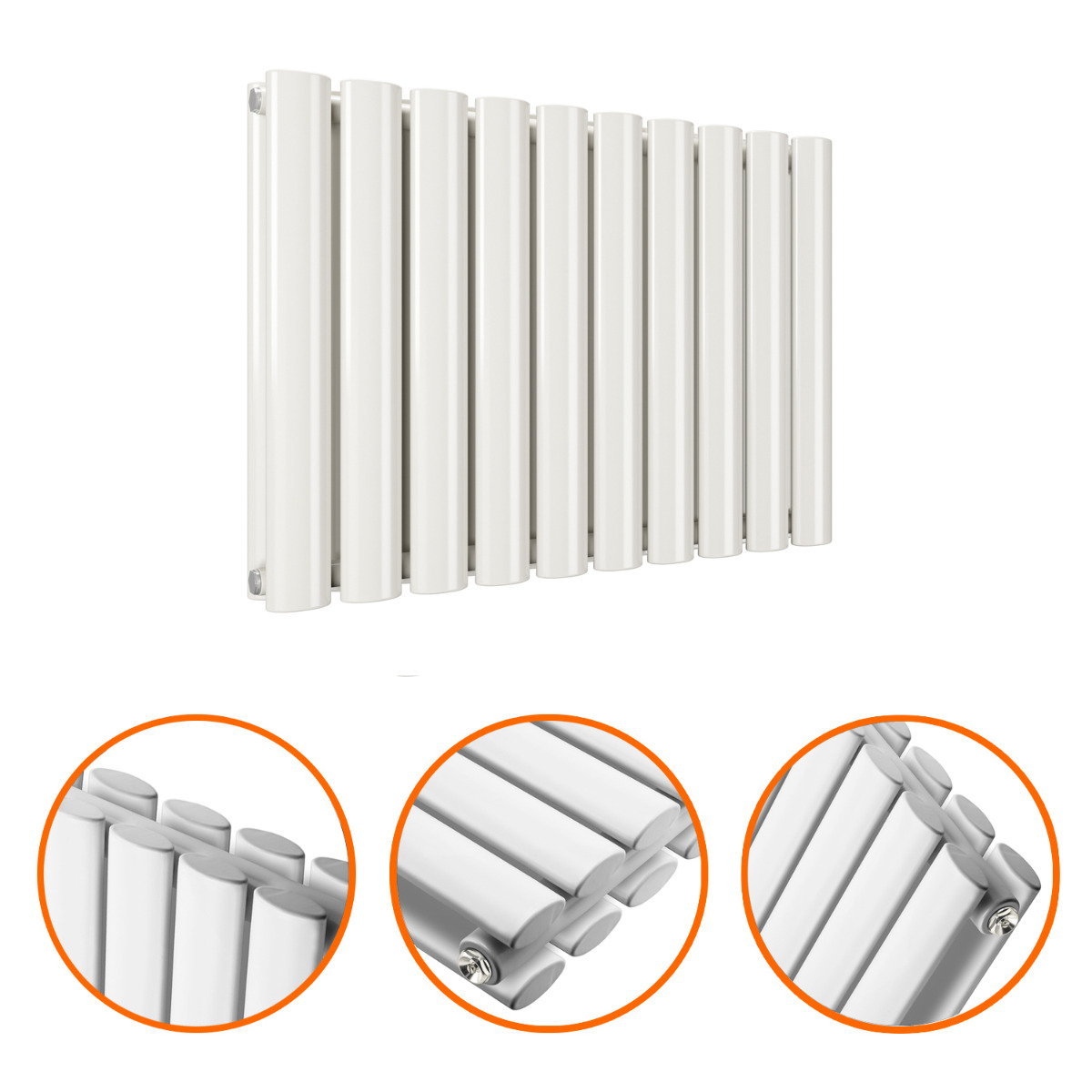 400 x 595mm White Double Oval Tube Horizontal Radiator