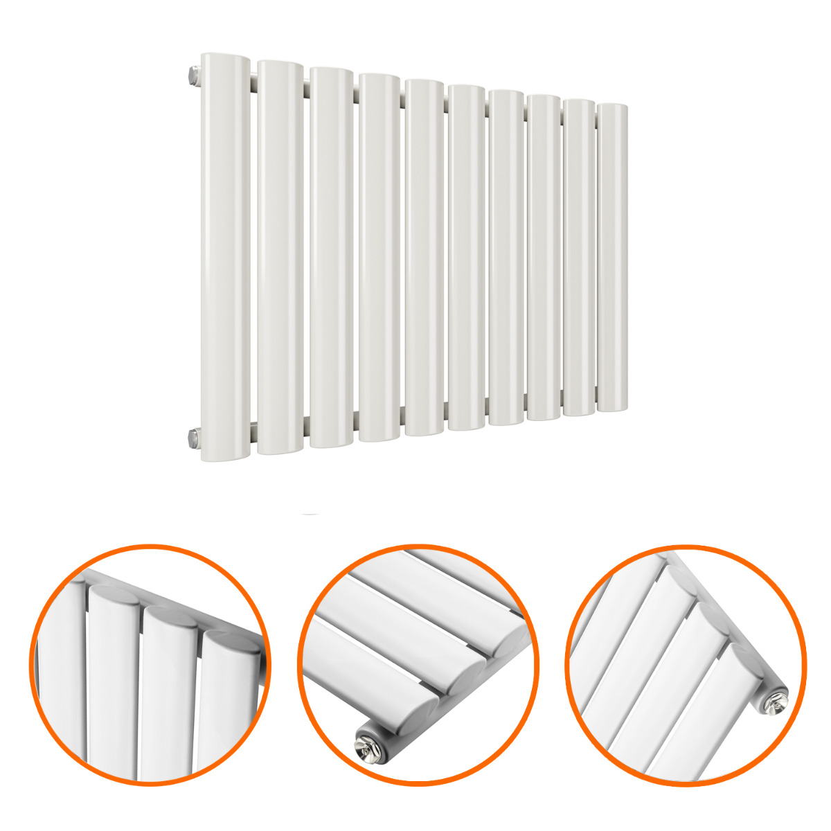 400 x 595mm White Single Oval Tube Horizontal Radiator