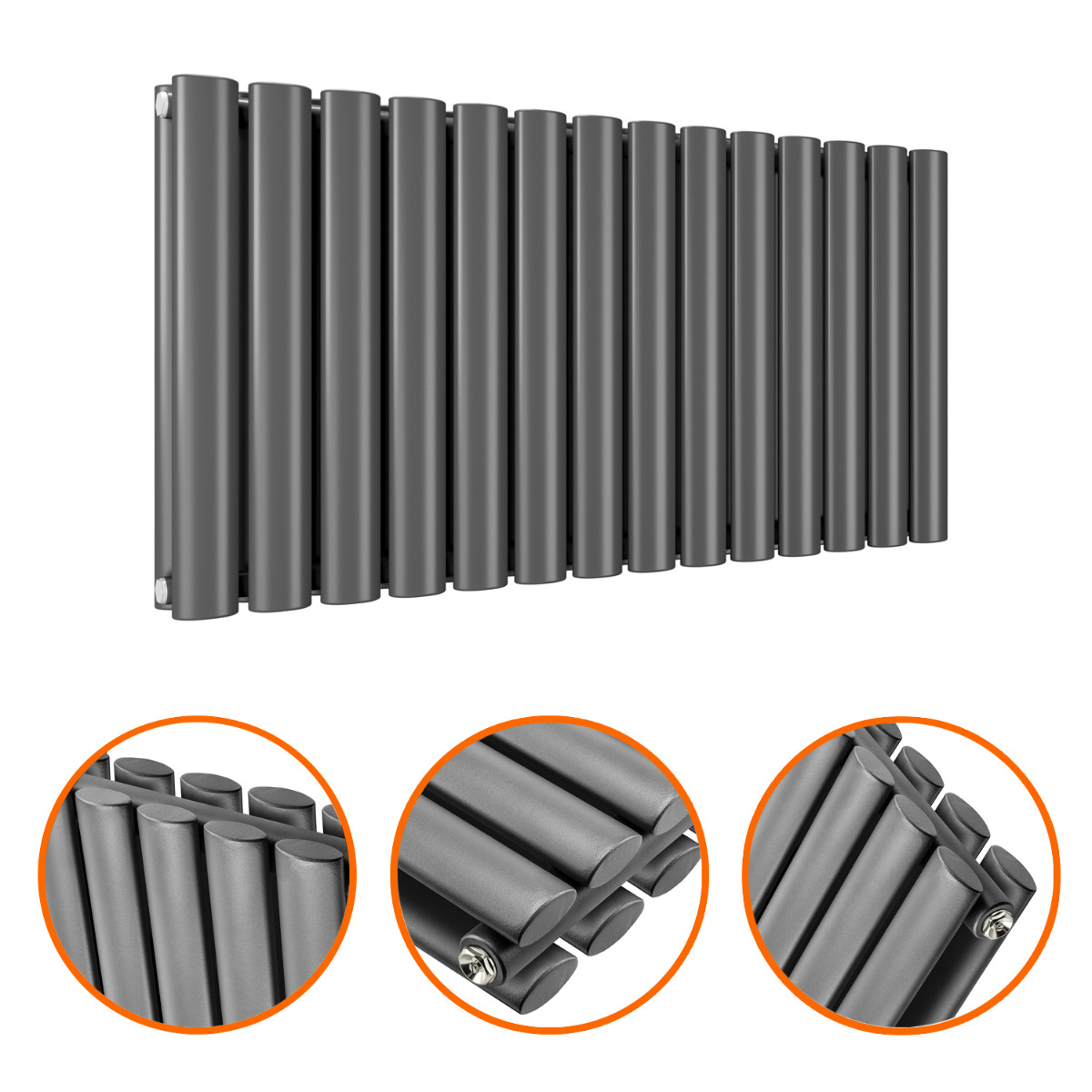 400 x 834mm Anthracite Double Oval Tube Horizontal Radiator