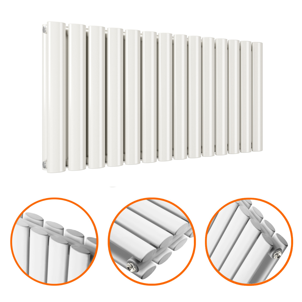 400 x 834mm White Double Oval Tube Horizontal Radiator