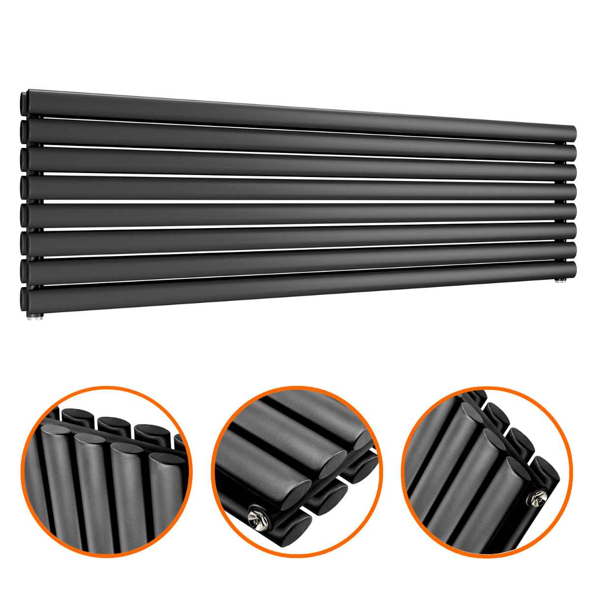 472mm x 1600mm Black Double Oval Tube Horizontal / Landscape Radiator