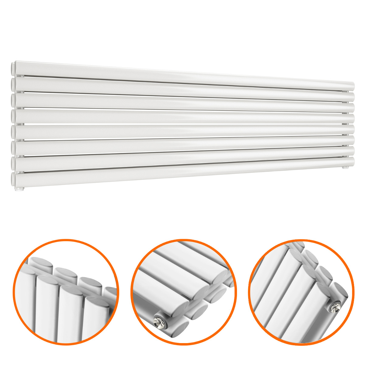 472mm x 1780mm White Double Oval Tube Horizontal / Landscape Radiator