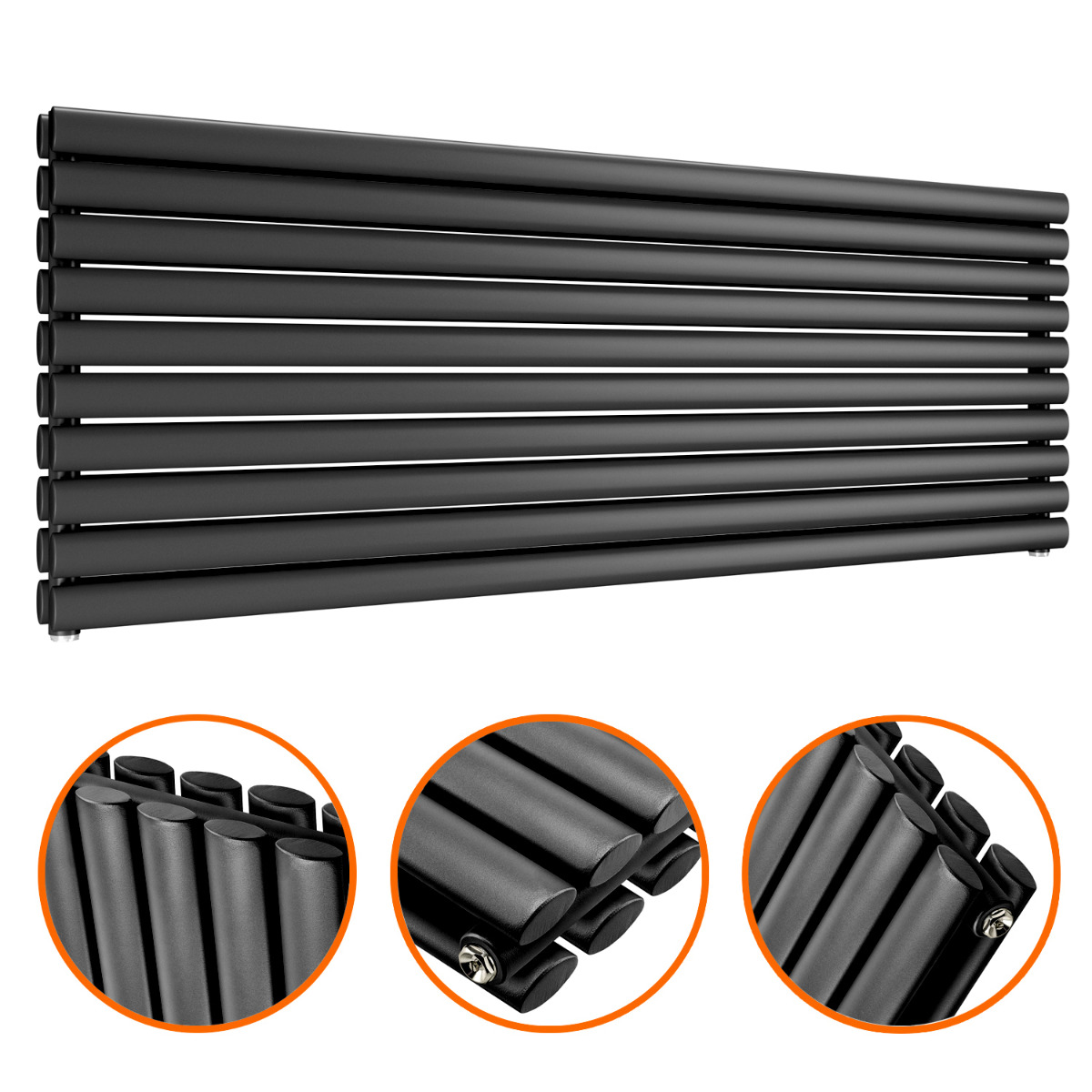 590mm x 1600mm Black Double Oval Tube Horizontal / Landscape Radiator