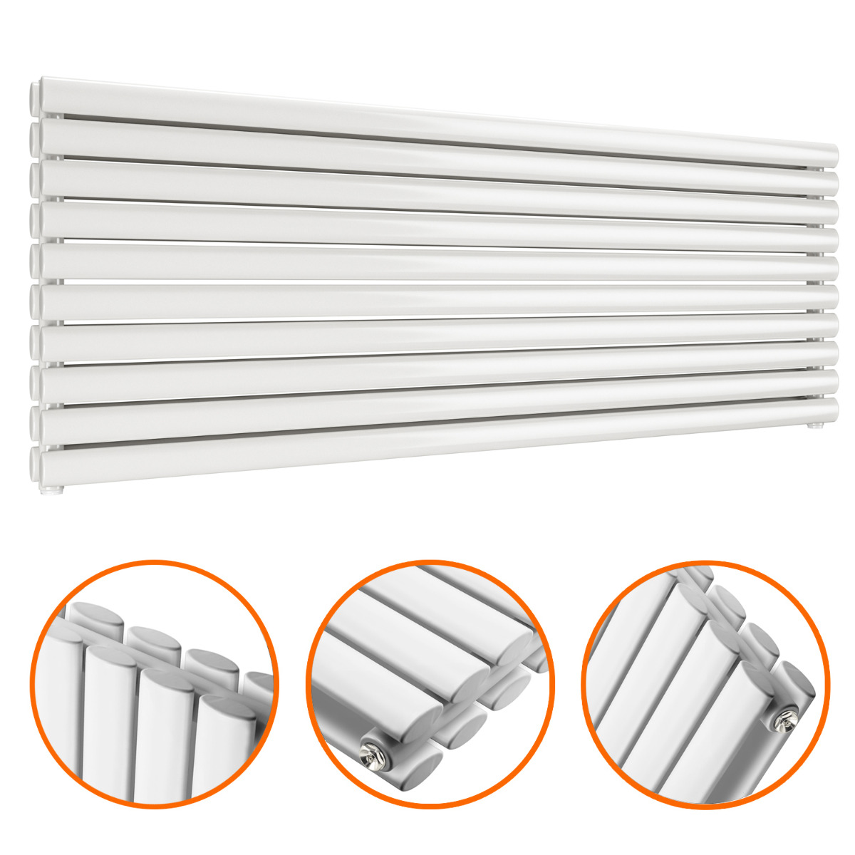 590mm x 1600mm White Double Oval Tube Horizontal / Landscape Radiator