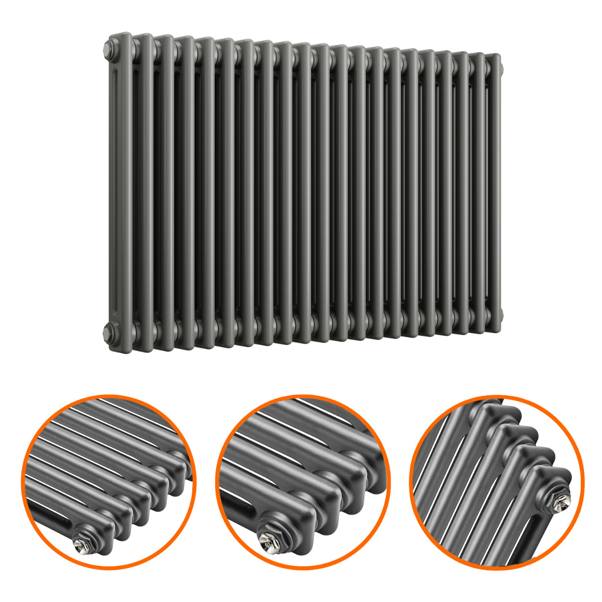 600 x 1013mm Anthracite Horizontal Traditional 2 Column Radiator