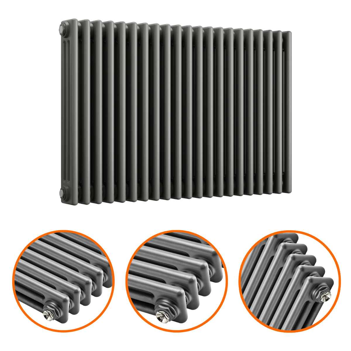 600 x 1013mm Anthracite Horizontal Traditional 3 Column Radiator