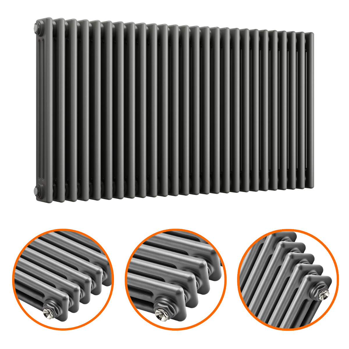 600 x 1193mm Anthracite Horizontal Traditional 3 Column Radiator