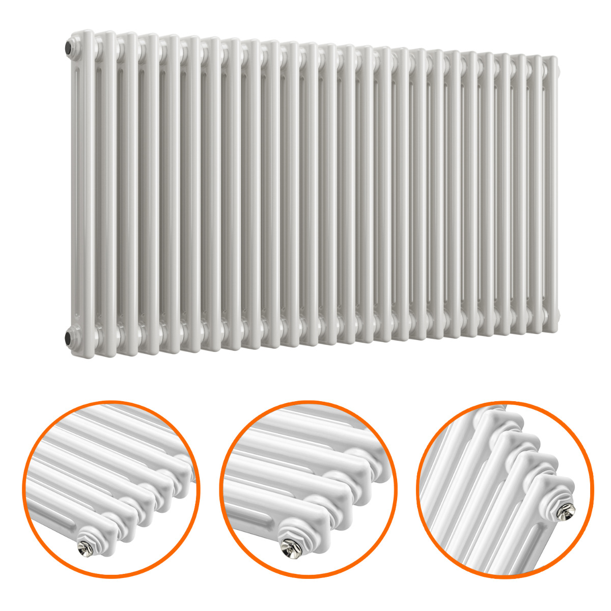 These 600mm x 1193mm traditional column radiators are an excellent and affordable way to add both warmth and style to your home. The radiators are manufactured to the highest possible standards using premium quality mild steel which ensures reliability and they emit a fantastic heat output of 4576 BTUs.