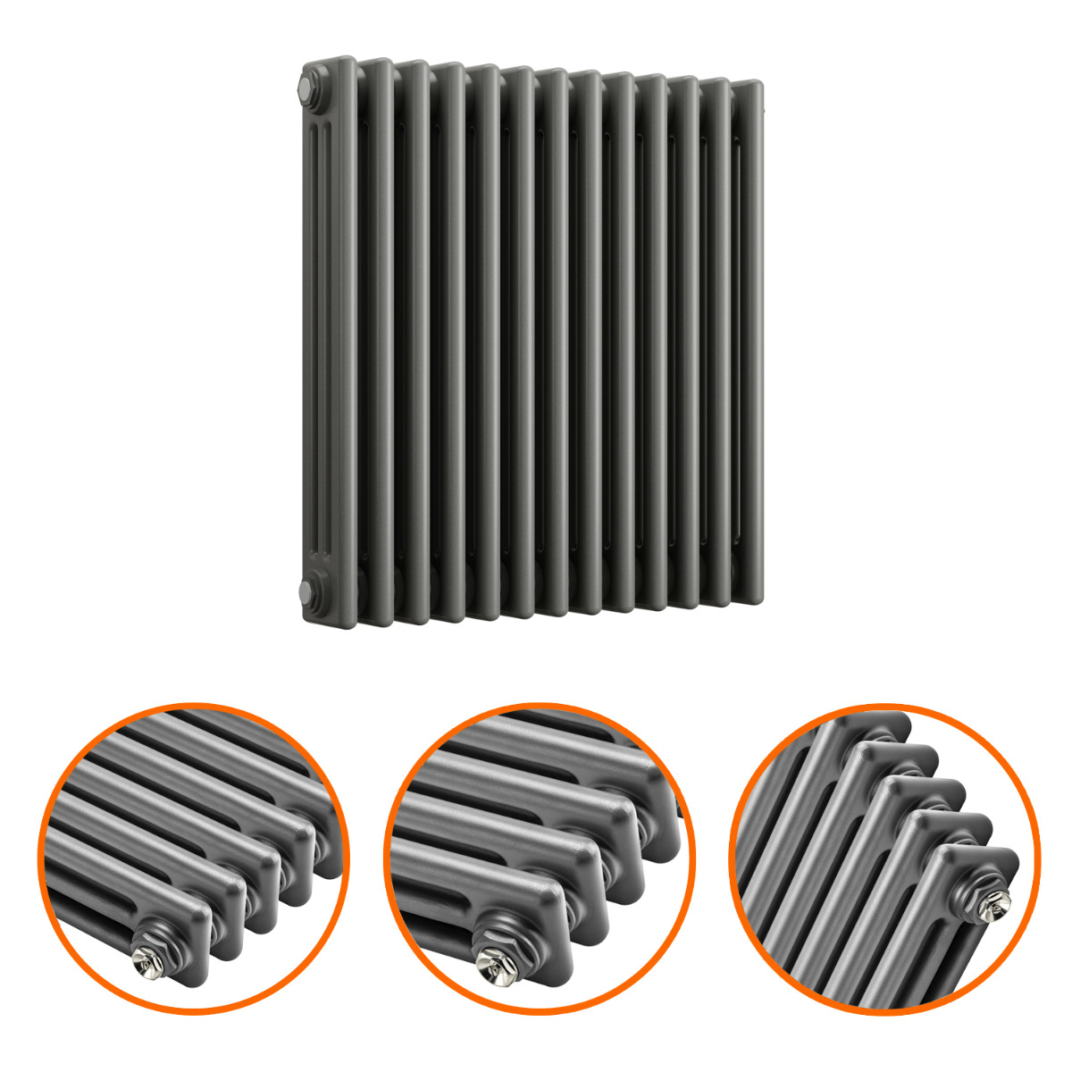 600 x 608mm Anthracite Horizontal Traditional 3 Column Radiator
