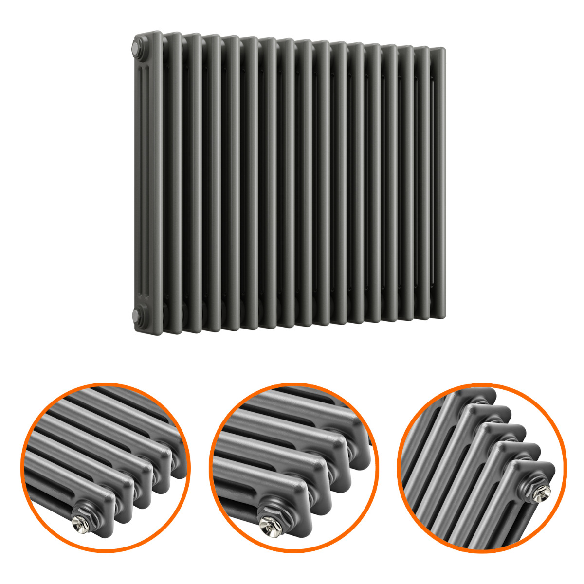 600 x 788mm Anthracite Horizontal Traditional 3 Column Radiator