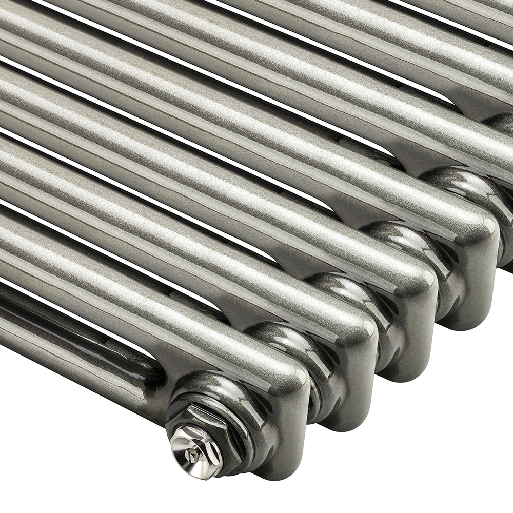 This column radiator has horizontal double columns which are ideal for heating up homes; the radiators have a unique and extremely fashionable raw metal lacquer finish which further reinforces the old fashion look customers hope to achieve with column radiators. Despite lacking paint to achieve this eye catching finish, the radiators have a high quality thick lacquer to ensure they maintain a perfect appearance for years to come.