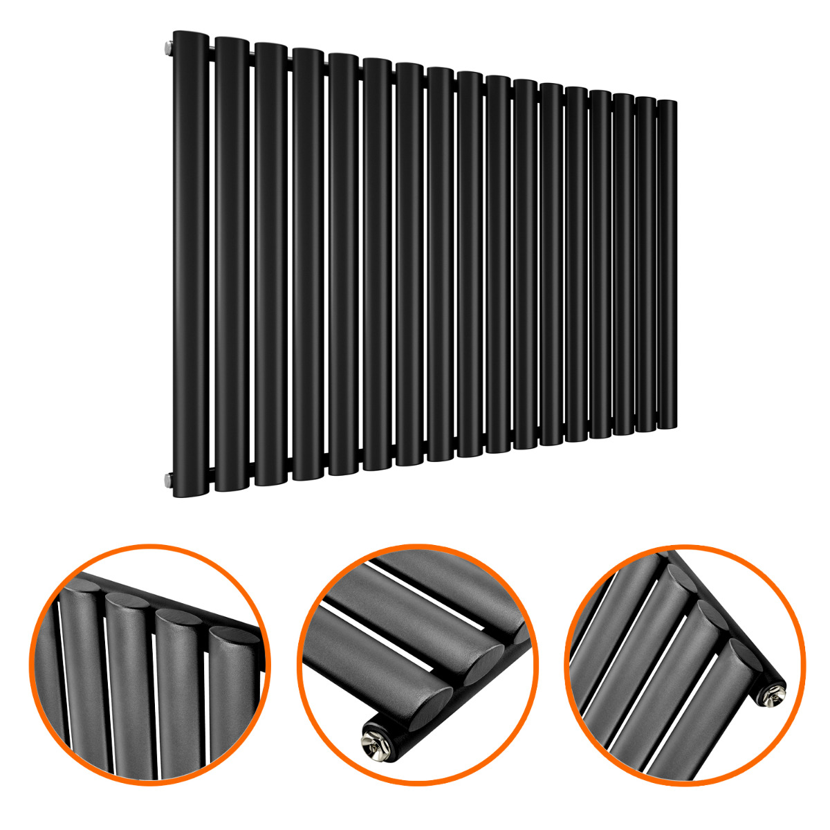 635 x 1000mm Black Single Oval Tube Horizontal Radiator