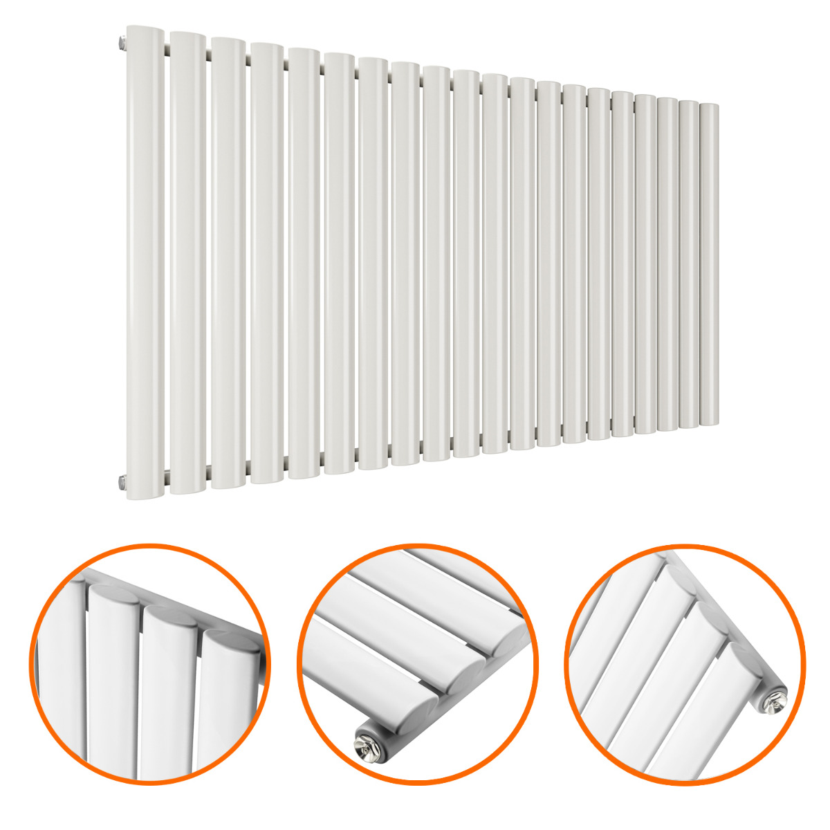 635 x 1180mm White Single Oval Tube Horizontal Radiator