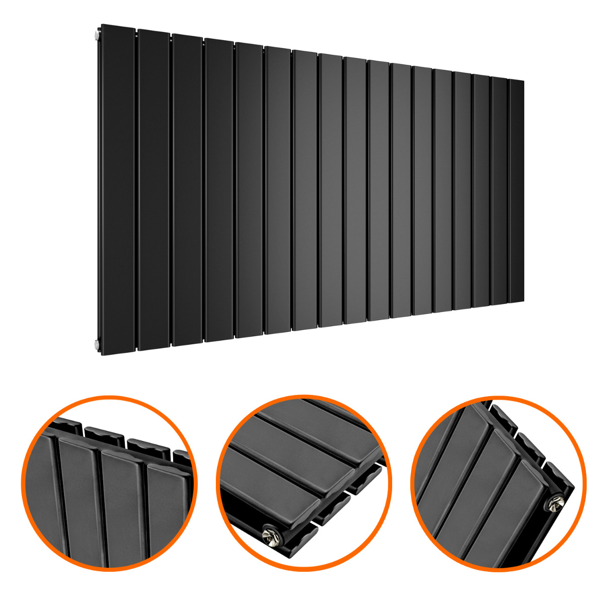 635 x 1190mm Black Double Flat Panel Horizontal Radiator