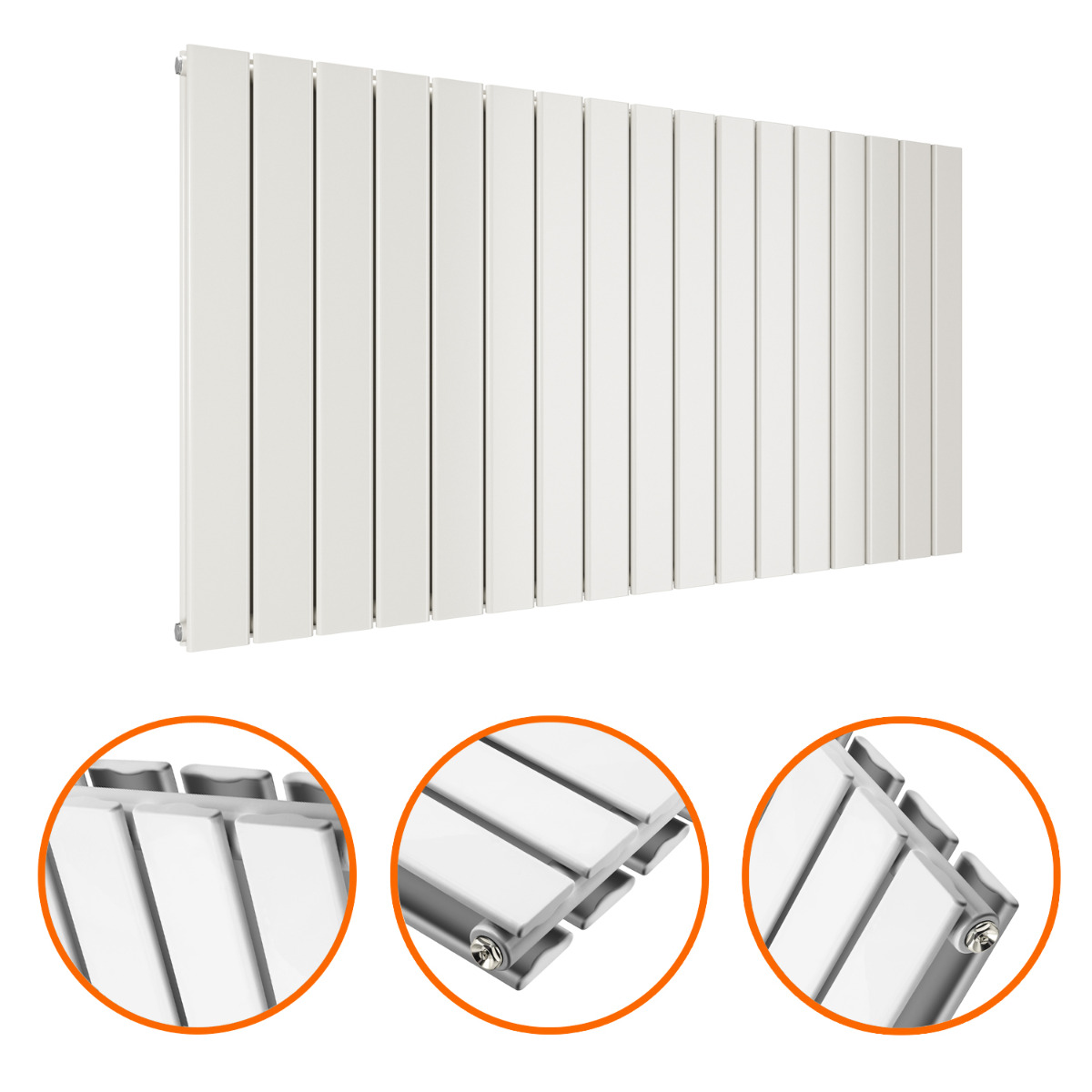 Add warmth to your home with our designer 635 x 1190mm double flat white horizontal panel radiators. Radiators from Radiator Outlet will make your rooms will feel a lot warmer during the colder months.