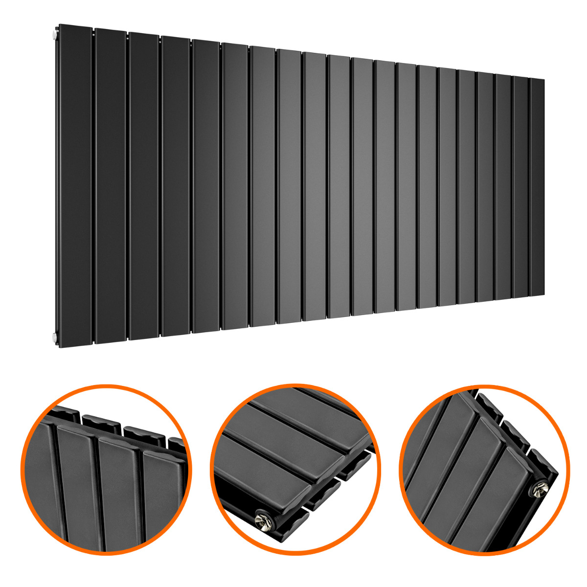 635 x 1400mm Black Double Flat Panel Horizontal Radiator