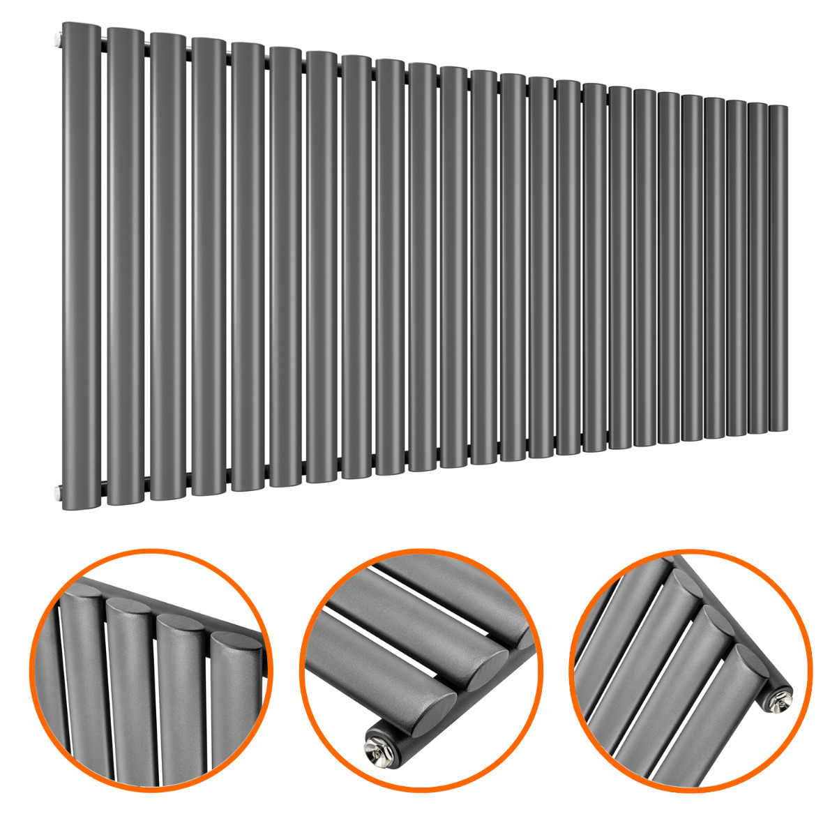 635 x 1411mm Anthracite Single Oval Tube Horizontal Radiator