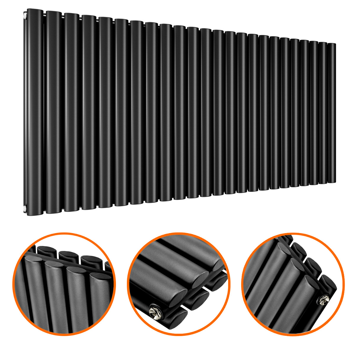 635 x 1411mm Black Double Oval Tube Horizontal Radiator