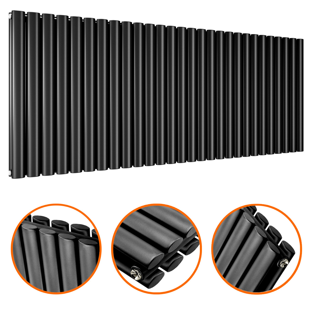 635 x 1652mm Black Double Oval Tube Horizontal Radiator