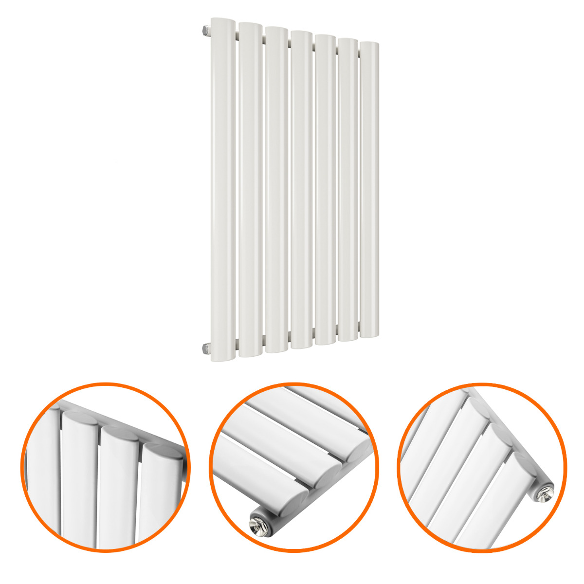 Give your home a warm feel with these designer 635 x 415mm single white oval tube radiators. With designer radiators like ours, your room will feel a lot warmer and create a modern designer look.