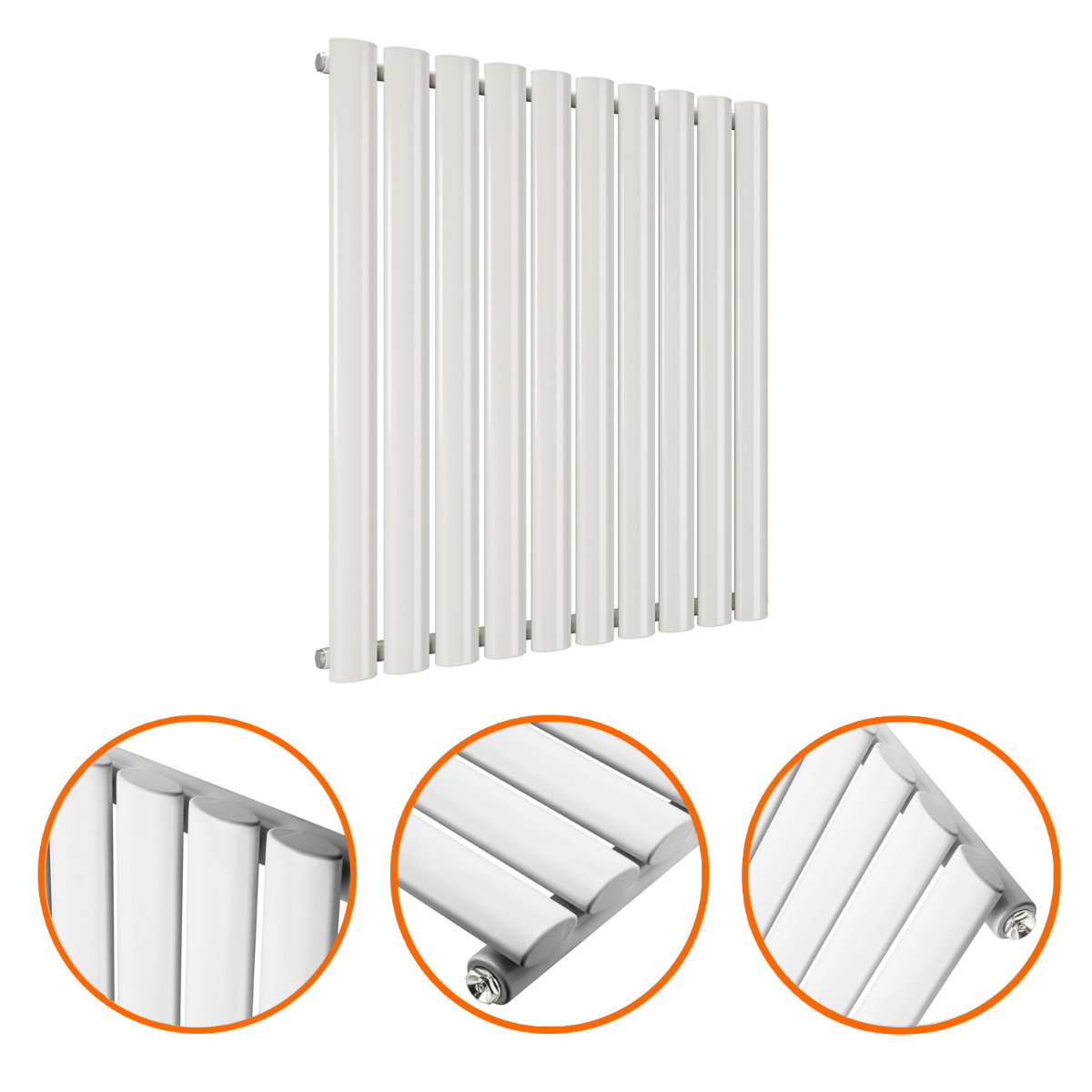 635 x 595mm White Single Oval Tube Horizontal Radiator